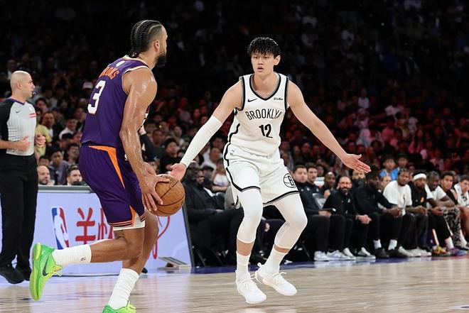 NBA季前赛篮网对阵太阳,昨晚在中国澳门开打。而曾凡博,终于迎来了自己的NBA赛场首秀。但曾凡博的表现该怎么说呢,可以说是毫无表现。上场10分钟的曾凡博,全场数据定格在0分0篮板