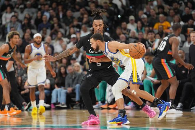 在 NBA 常规赛的一场焦点对决中,金州勇士与圣安东尼奥马刺上演了一场跌宕起伏的攻防大战,最终勇士以 109-108 的微弱优势险胜对手,这场比赛不仅因比分胶着充满悬念,更因球星的巅峰表现和新旧力量的碰撞成为热议焦点。