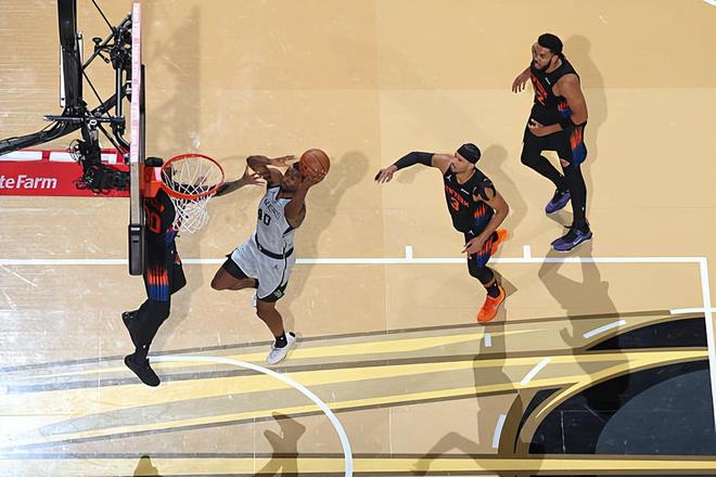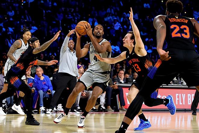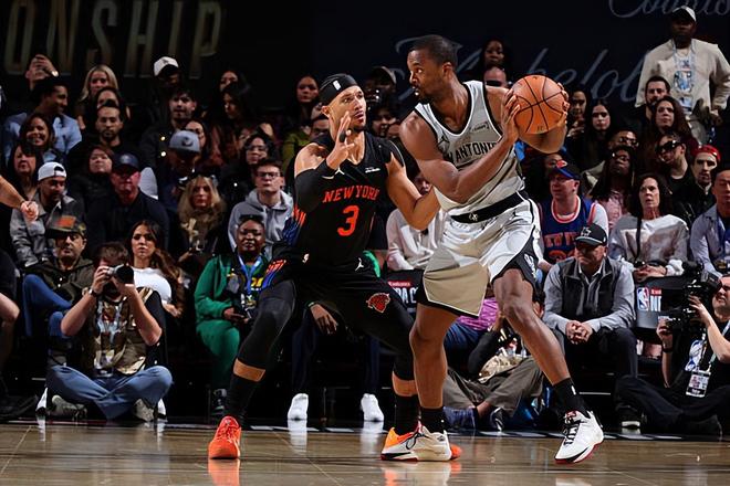 在此前的NBA杯决赛中,纽约尼克斯在末节完成了大逆转,以124比113战胜了圣安东尼奥马刺,成功拿到了本次NBA杯的总冠军。本场比赛中,马刺的先发锋线球员哈里森-巴恩斯(Harrison Barn