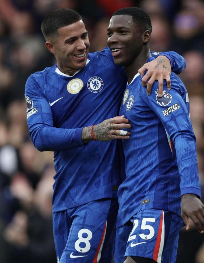 第45分钟,刚刚进球的韦格霍斯特又在防守中犯规送点,恩佐操刀命中,切尔西将比分扩大到了3-1。