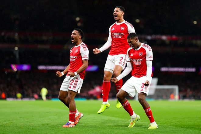 北京时间11月27日凌晨,欧冠联赛阶段第5轮,阿森纳主场迎战拜仁。第22分钟,利用角球萨卡助攻廷贝尔破门。10分钟后,枪手旧将格纳布里助攻卡尔扳平比分。第69分钟,替补登场的卡拉菲奥里第一次触球就送出助攻,马杜埃凯的进球帮助枪手再次领先。第77分钟,另一名替补马丁内利过掉基米希将球打进空门。最终,阿森纳主场3-1战胜拜仁,拜仁本赛季不败金身告破,阿森纳5战全胜领跑欧冠。