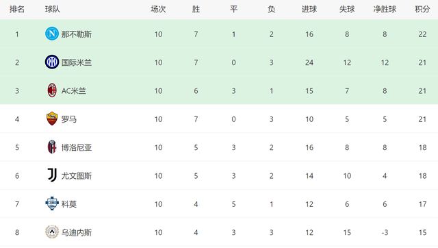 截至目前,拿到3分之后,AC米兰重新回到意甲前三的位置,而且他们仅仅落后榜首的那不勒斯1分。从目前来看,本赛季意甲冠军大概率将在那不勒斯、国米、AC米兰、罗马和尤文这5支球队当中产生,在换帅之后,尤文已经迎来2连胜,他们重新回到了争冠的行列当中。