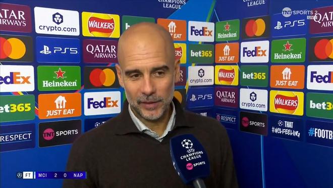 率队在欧冠联赛阶段首轮主场2-0击败那不勒斯之后,曼城主教练瓜迪奥拉接受了来自TNT体育的采访。