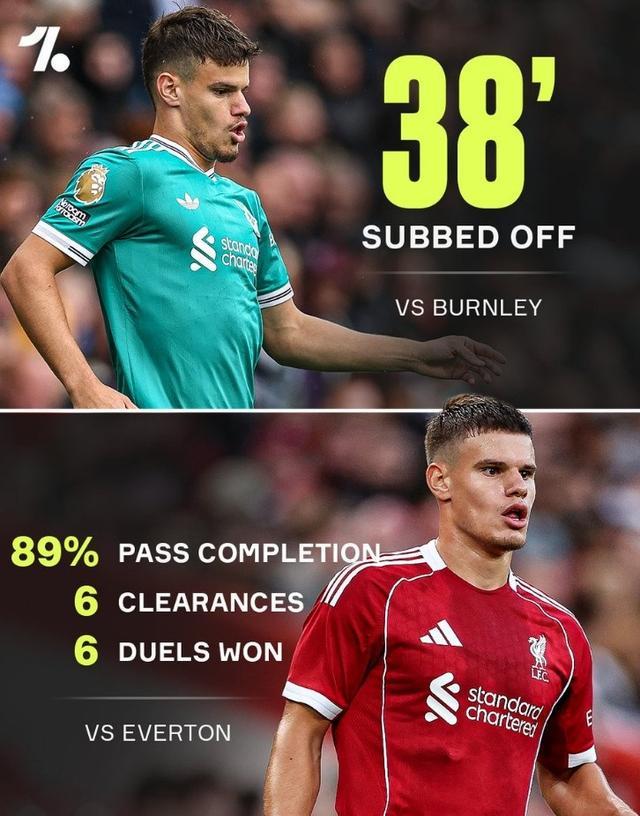 9月20日讯 在本轮英超,利物浦2-1击败埃弗顿。利物浦新援科尔克兹在上一轮英超对阵伯恩利的比赛中第38分钟就被提前换下,对阵马竞也只在最后时刻替补登场,不过本场比赛他可谓证
