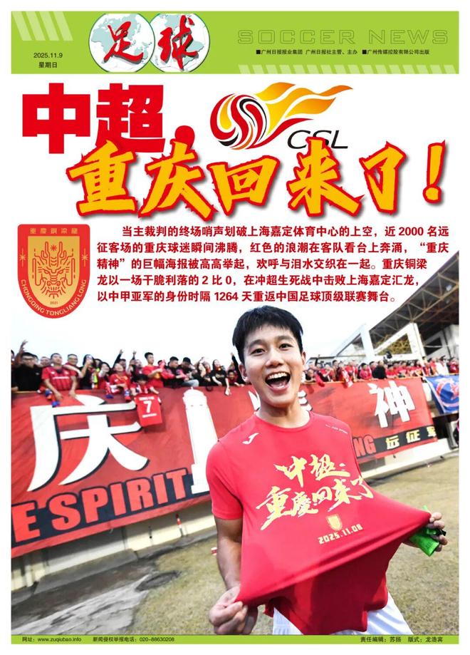 当铜梁龙的队徽出现在下赛季中超赛场,这不仅是一支球队的胜利,更是一座城市足球信仰的延续。从两江竞技解散的阴霾,到铜梁龙的浴火重生,重庆足球在等待中积蓄力量,在挫折中砥砺前行。